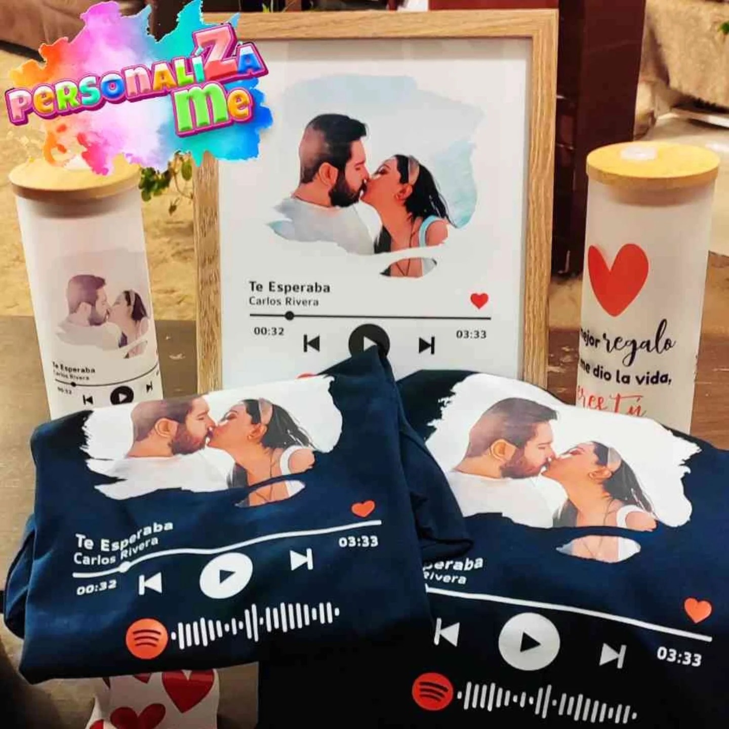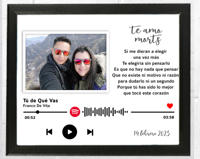 Con nuestras opciones de personalización, puedes crear una pieza única que combine imágenes, música y frases significativas.